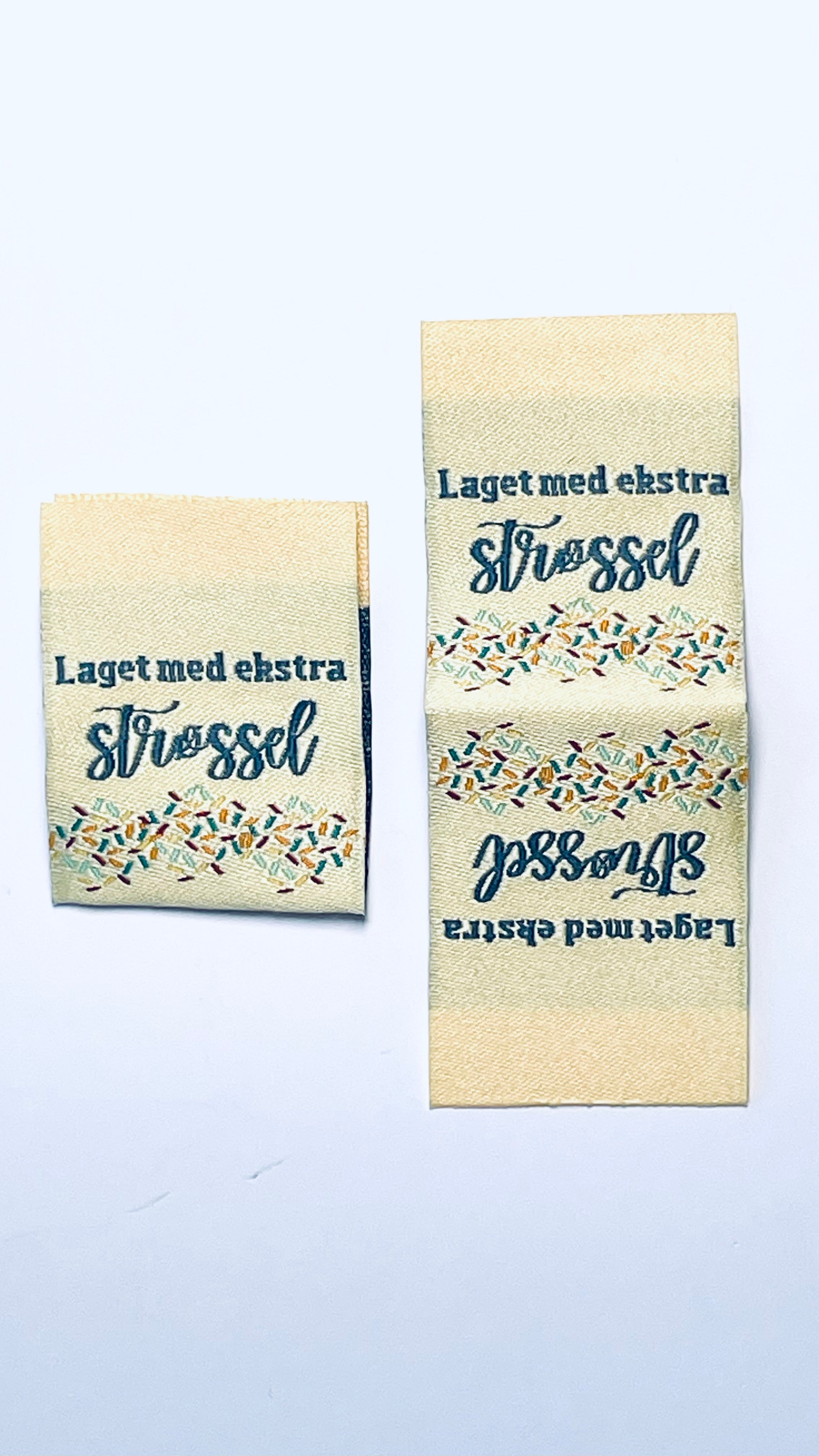 Lappene er satengvevd i silke, dobbelfoldet, med motiv på begge sider. De er laget for å gi godfølelse, omtanke, inkludering og glede – og kan sys på eller inni vesker, klær og interiør. De passer like godt til gaver som til egne prosjekter.